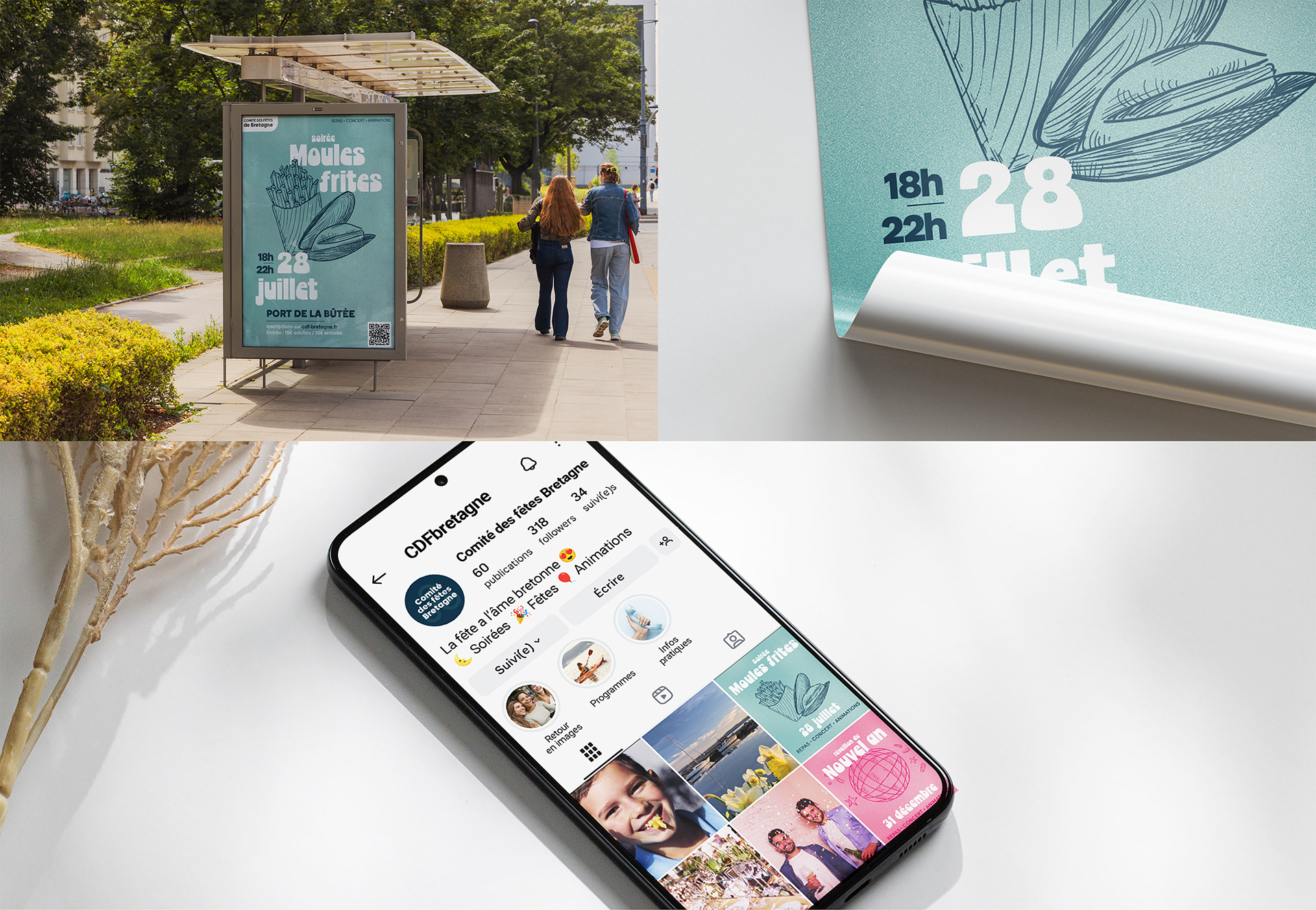 Organisatrice de nombreux évènements, l'association souhaite qu'on puisse reconnaître son identité en un seul coup d'œil, grâce à une image attirante et cohérente pour ses visuels.